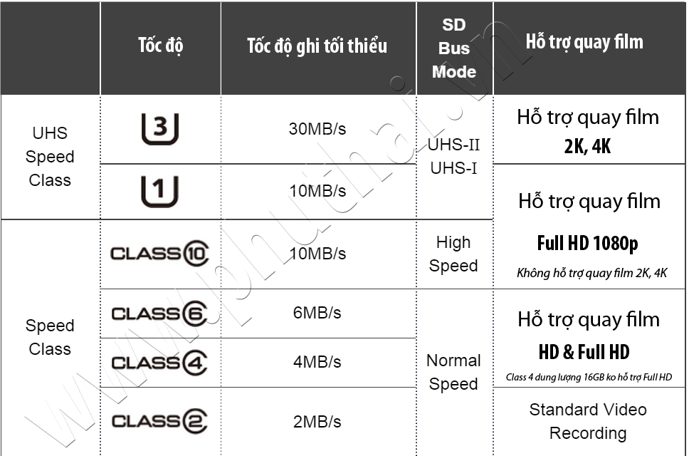– Với những máy ảnh thông thường, các bạn chỉ cần mua thẻ SD hoặc SDHC Class 2 ~ 6.